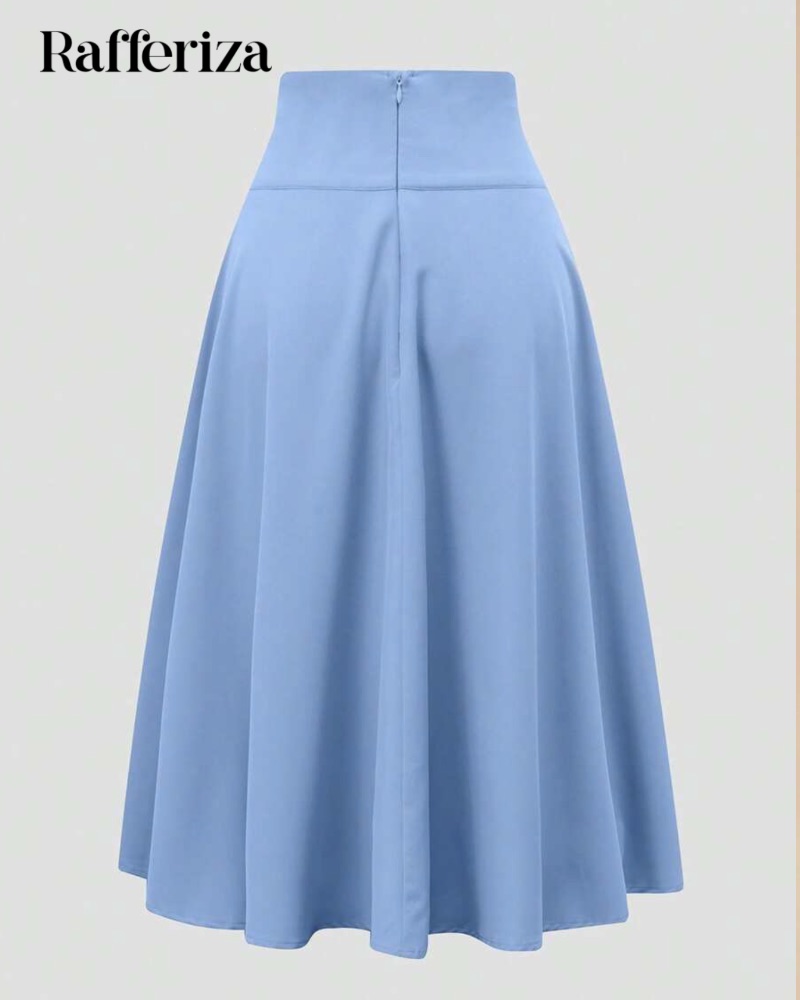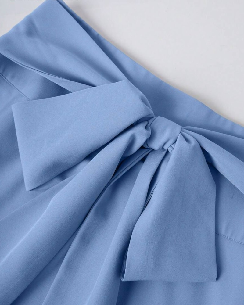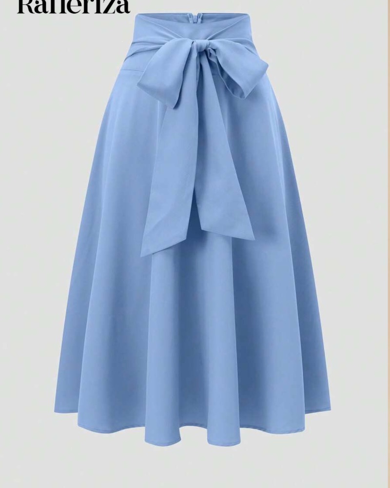 Midi φούστα σε baby blue χρώμα, με δέσιμο στο μπροστινό μέρος και απαλή υφή.