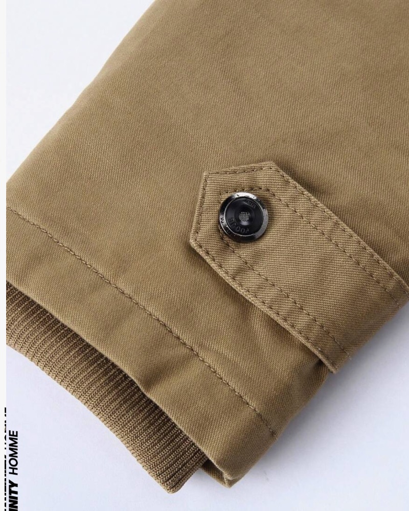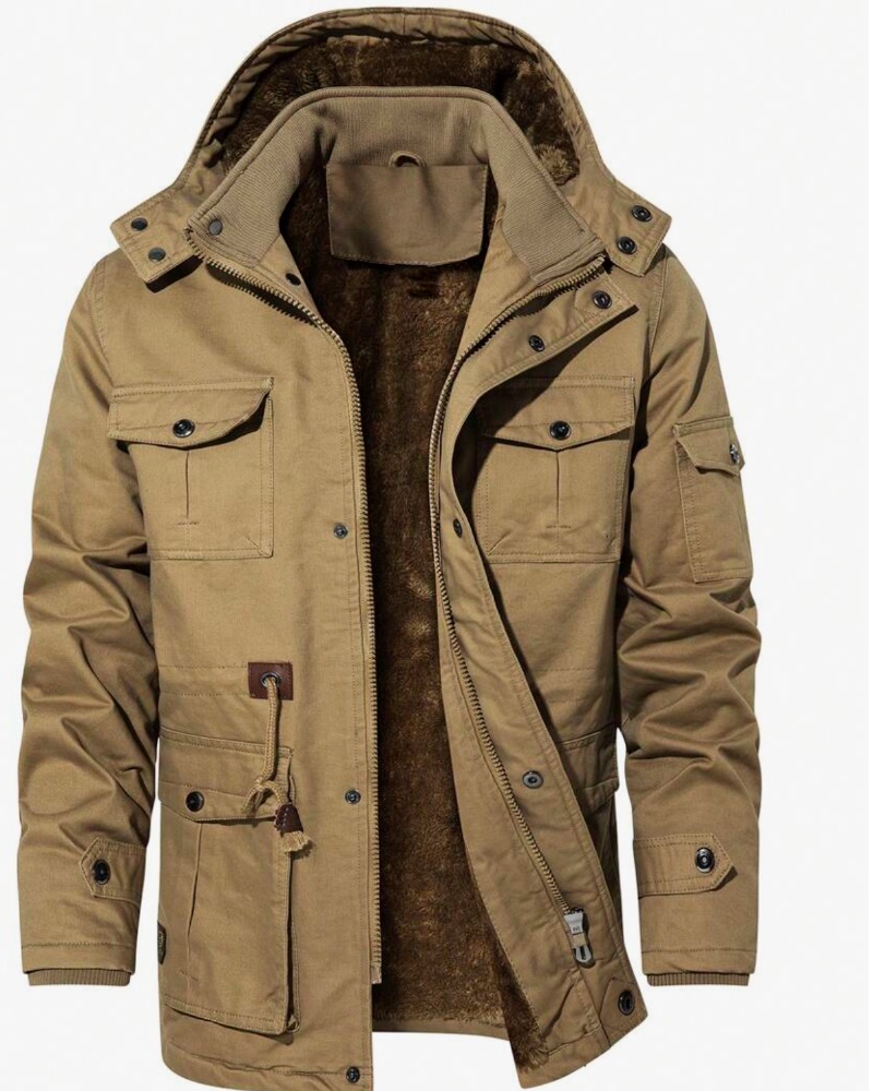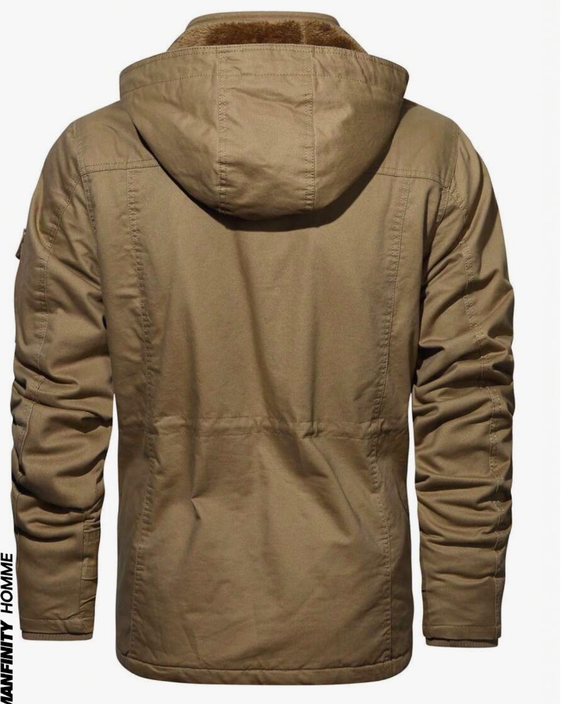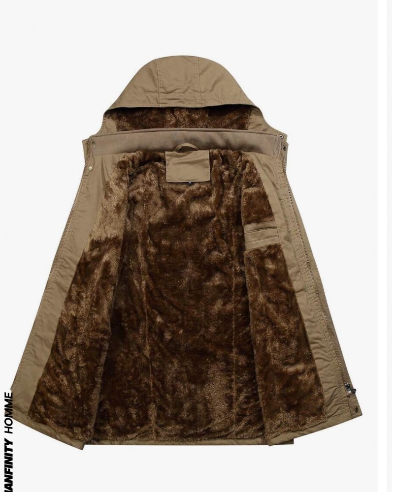 Κομψό ανδρικό παλτό σε καφέ απόχρωση, διακοσμημένο με γούνα στον γιακά για επιπλέον ζεστασιά και στυλ. Κατάλληλο για επίσημες και καθημερινές εμφανίσεις.