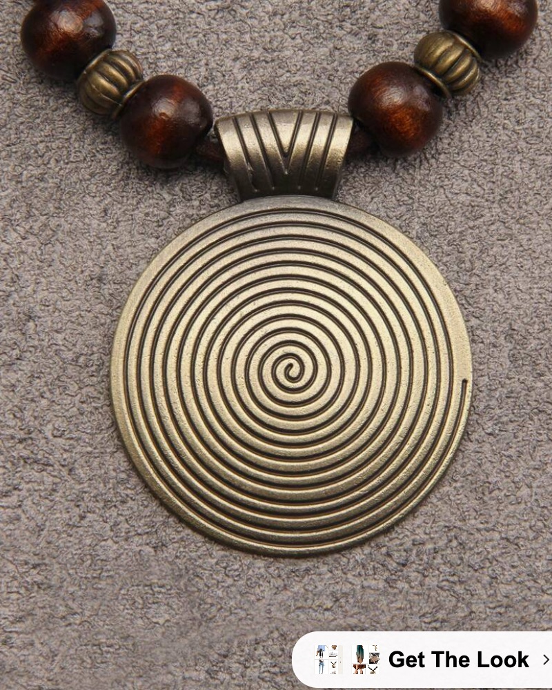 Κολιέ με εντυπωσιακό στρογγυλό μενταγιόν τύπου σπείρα. Αρχαιοελληνικό στυλ με έθνικ διάθεση.