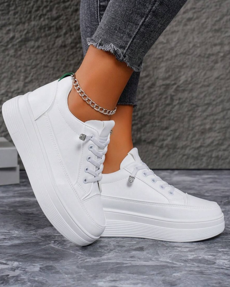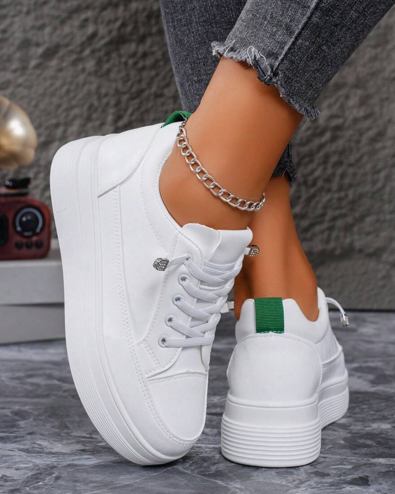 Κλασικά λευκά sneakers με chunky σόλα και πράσινη λεπτομέρεια στο πίσω μέρος. Ιδανικά για καθημερινό street style look με μοντέρνα πινελιά.
