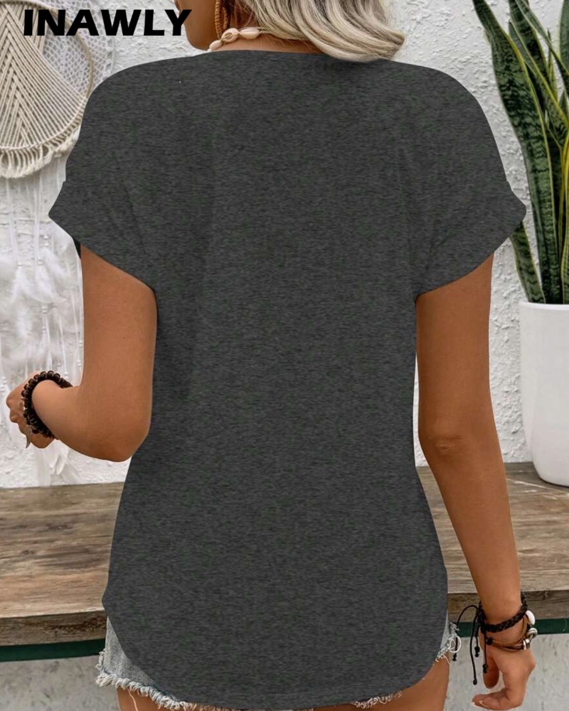 T-shirt σε σκούρο γκρι/μαύρο με εντυπωσιακό print ηλιοτρόπιου στο στήθος. Προσδίδει θετική διάθεση και νεανικό χαρακτήρα. Μοντέρνο και διασκεδαστικό, ιδανικό για καλοκαιρινές εμφανίσεις.