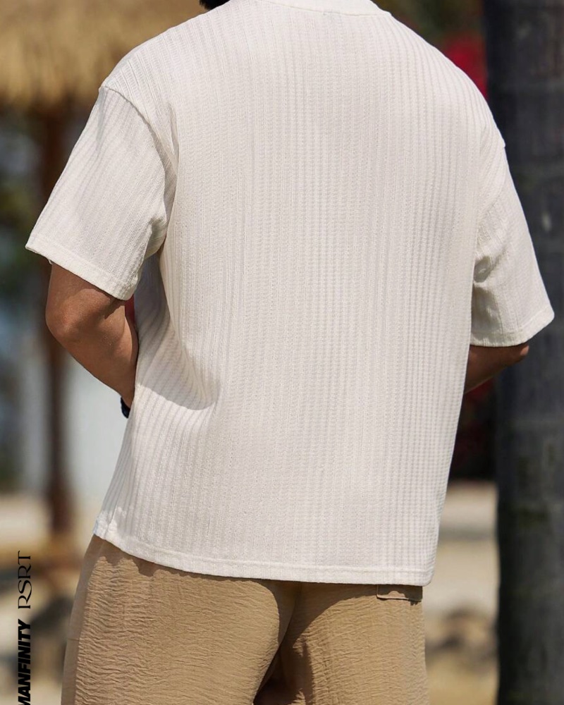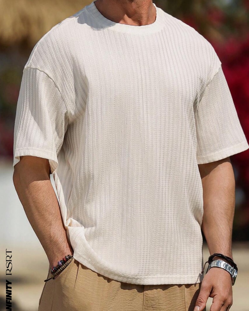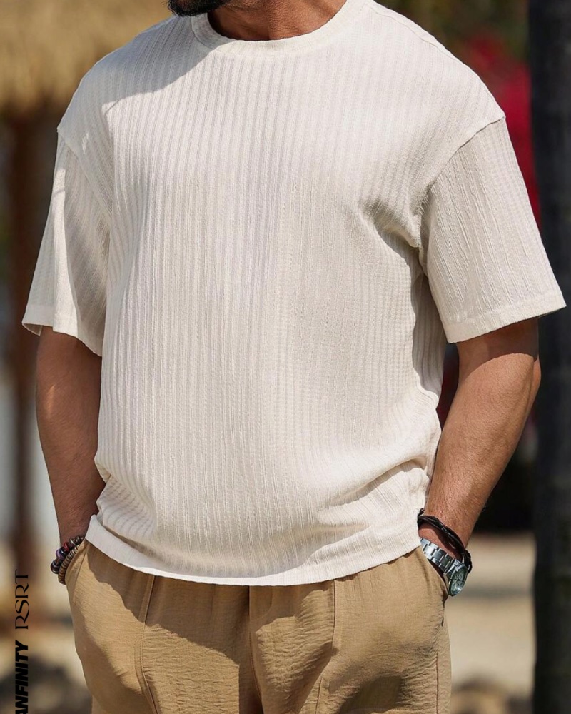 Κομψό ανδρικό σύνολο σε κρεμ-καφέ αποχρώσεις, ιδανικό για καλοκαιρινές και ανοιξιάτικες εμφανίσεις.