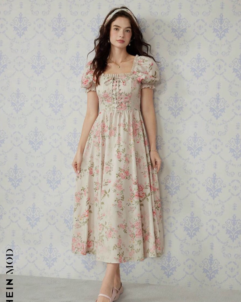 Κομψό vintage floral φόρεμα.